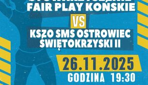 Już w najbliższą środę, 26 listopada, o godz. 19:30 drużyna Fair Play Końskie zmierzy się z KSZO SMS Ostrowiec Świętokrzyski II w Hali Sportowej w Stadnickiej Woli. To kolejna szansa dla koneckich si...
