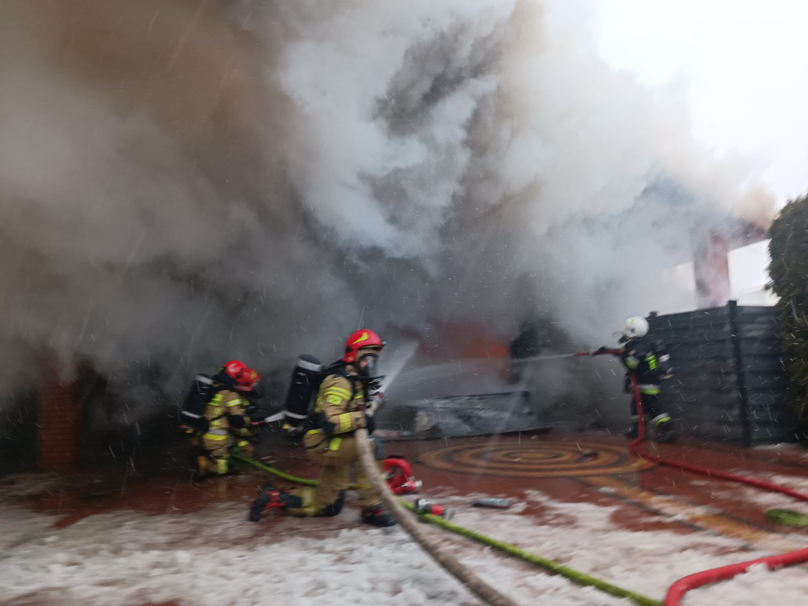 Kolejny pożar w regionie. Garaż spłonął w Przybyszowach. Długa akcja strażaków [zdjęcia]