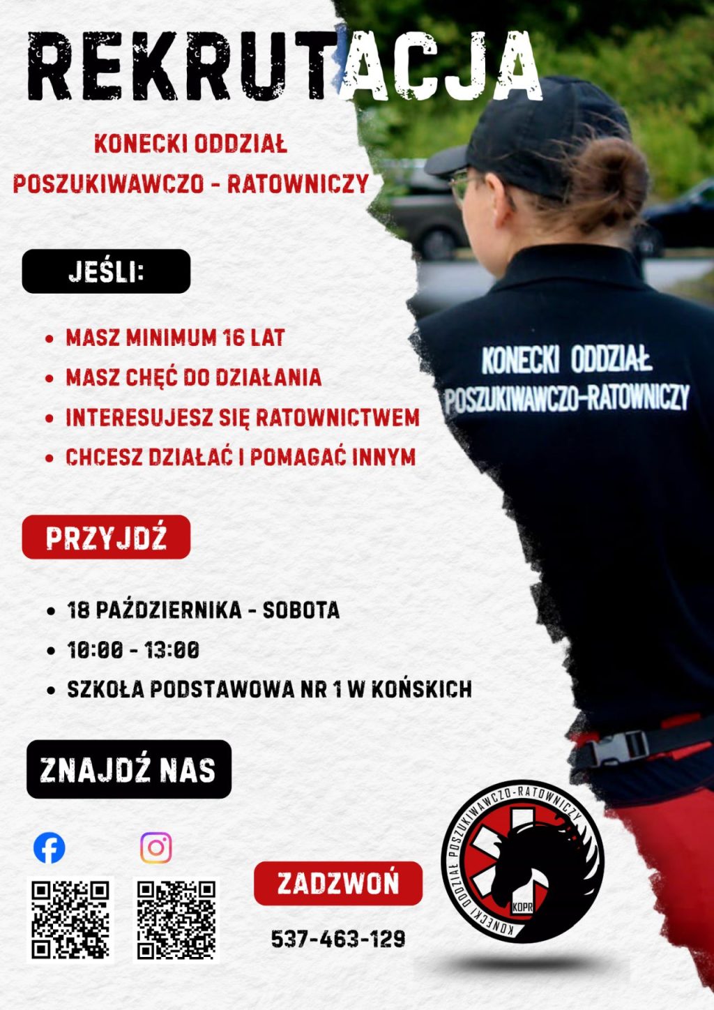 Koneccy Strzelcy z JS2026 i ratownicy Koneckiego Oddziału Poszukiwawczo-Ratowniczego rekrutują plakat 01