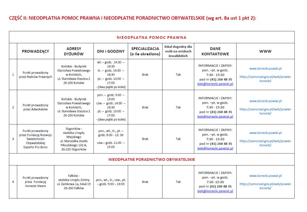 Nieodpłatna pomoc prawna w powiecie koneckim. Sprawdź ważne informacje