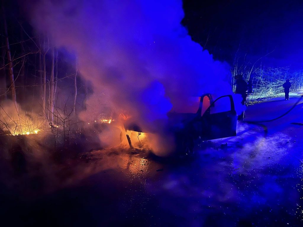 Pożar mercedesa na drodze w gminie Ruda Maleniecka (3)