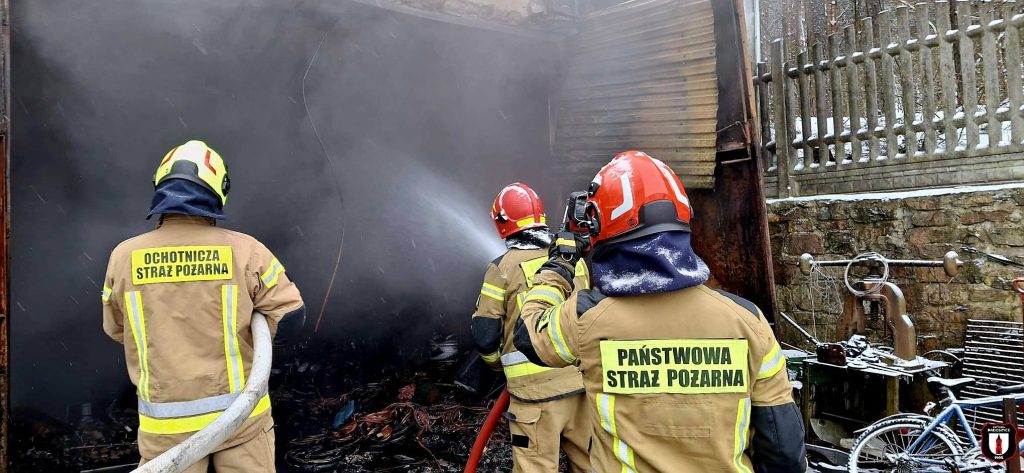 Pożar garażu w Wąglowie w gminie Stąporków. W środku była butla z acetylenem 03