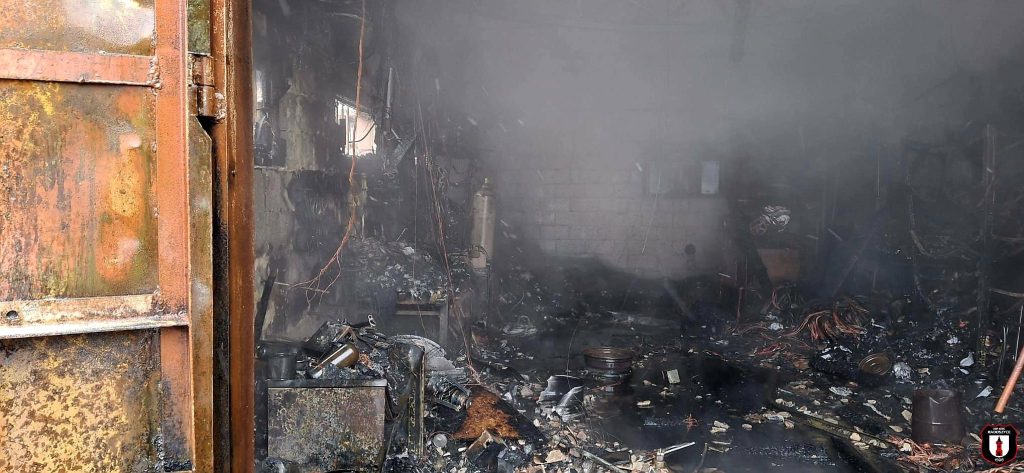 Pożar garażu w Wąglowie w gminie Stąporków. W środku była butla z acetylenem 04