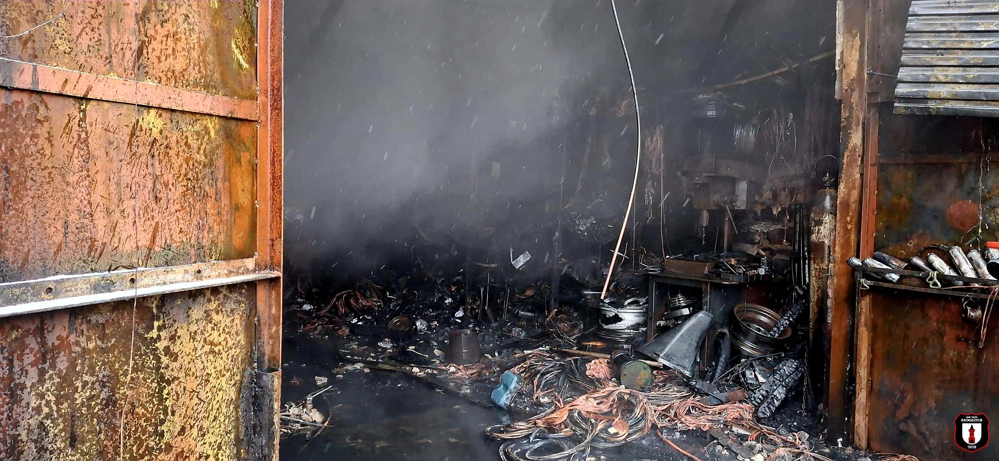 Pożar garażu w Wąglowie w gminie Stąporków. W środku była butla z acetylenem 05