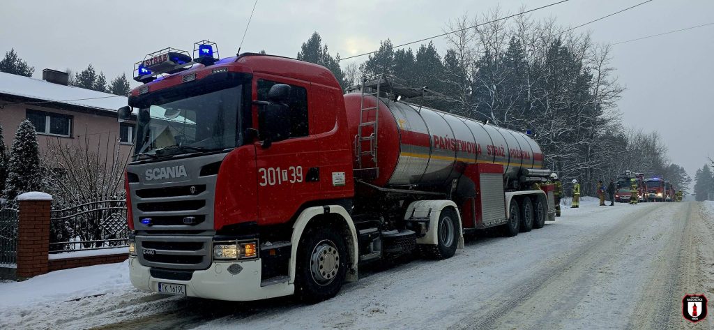 Pożar w Wąglowie. Na miejscu ulatniał się acetylen. Strażacy pracowali w ciężkich warunkach