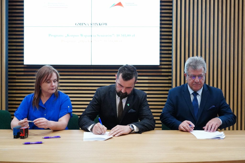 We wtorek 17 czerwca zastępca wójta gminy Smyków Karol Leśniak przy kontrasygnacie skarbnika Agnieszki Chyb podpisał umowę na realizację Programu Korpus Wsparcia Seniorów na 2025 rok.